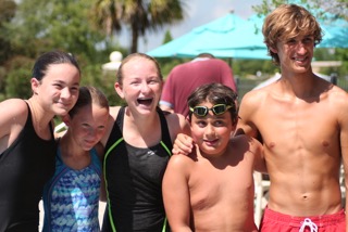 4) bring sunscreen, towel, and water to each practice and swim meet.